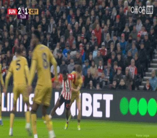第71分钟,逆转比分,布罗贝伊完成破门,桑德兰2-1