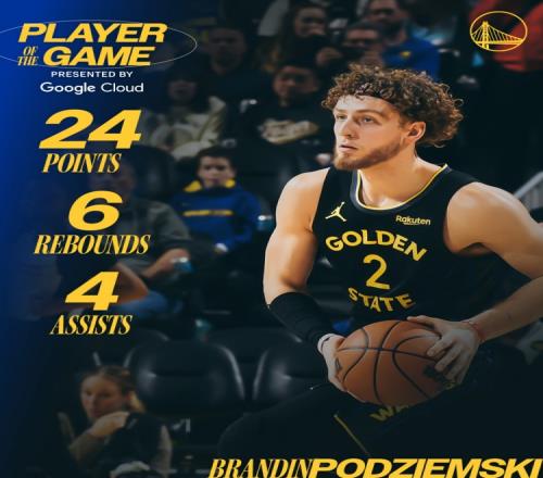 24分赛季新高!勇士官方评选本场最佳:波杰姆斯基当选