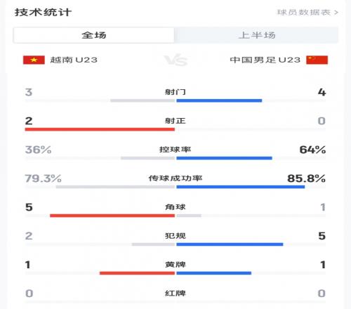 体育播报01月21日宣 U23亚洲杯半决赛,国足U23暂0-0越南U23,目前国足U23的控球率高达64%。