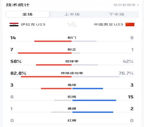 反常!国足U23前四场平均控球率37%,目前半场控球率高达64%