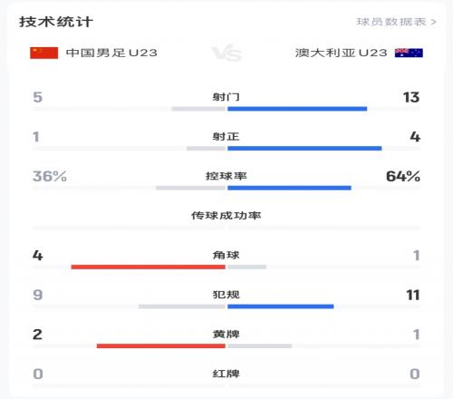 而国足在本届U23亚洲杯的前四场比赛中,控球率分别为42%、36%、40%、29%,平均控球率仅37%。