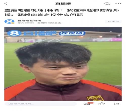 确实没问题!杨希赛前采访:我在中超都防外援,踢越南没什么问题